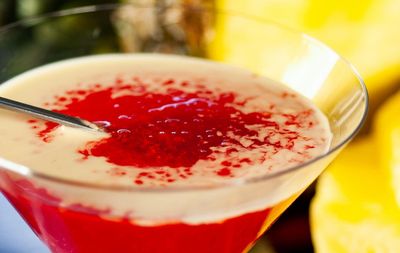 Wash fruit. Peel and cut up guava. Place in pan with 1 1/2 cups water. Simmer covered for 20 minutes. Strain. Save shells for later use. Measure liquid, adding enough water to make 2 ½ cups of liquid. Add sugar, salt and bring to a boil. Stir constantly. Mix tapioca in ½ cup of water and add slowly along with spices. Bring to a boil once more, stirring constantly. Remove from the heat when tapioca grains are clear. Add vanilla essence. Pour into a ceramic container or individual ramekins. Serve with heavy cream.